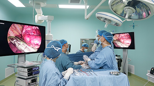 ● 腹腔镜/胸腔镜微创治疗 常规开展腹腔镜阑尾切除术,腹腔镜胃、十二指肠穿孔修补术,腹腔镜下成人疝修补术(TAPP TEP),腹腔镜下小儿疝疝囊高位结扎术,腹腔镜结肠癌根治术,腹腔镜直肠癌根治术,腹腔镜胃癌根治术,腹腔镜下回肠、结肠造口术,腹腔镜腹腔内及腹膜后肿瘤切除术,急腹症患者腹腔镜探查,各种腹腔内肿瘤腹腔镜探查术,腹部外伤腹腔镜探查术等。普胸外科开展了胸腔镜下肺部分切除、肺癌根治、纵膈肿瘤切等。