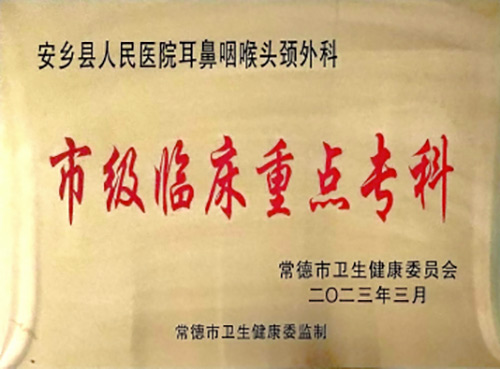 安乡县人民医院眼科/耳鼻咽喉头颈外科是常德市重点临床专科,湖南耳鼻喉头颈外科专科联盟骨干单位,常德市耳鼻咽喉内镜临床应用质量控制优秀单位,中南大学湘雅二医院耳鼻咽喉头颈外科紧密型专科联盟成员单位,中南大学湘雅二医院眼科医联体联盟单位,湖南省眼科联盟成员单位,湖南省眼视光联盟成员单位。